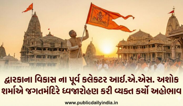 દ્વારકાના સર્વાંગી વિકાસમાં મહત્વપૂર્ણ યોગદાન આપનાર પૂર્વ કલેક્ટર તથા આઈ.એ.એસ. અધિકારી અશોક શર્માએ પરિવાર સાથે જગતમંદિર ખાતે ધ્વજારોહણ કરી કાળિયાઠાકરના ચરણોમાં શિશ ઝુકાવ્યું. આ પ્રસંગે તેમણે પ્રભુ પ્રત્યે પોતાની ગાઢ આસ્થા વ્યક્ત કરતાં જણાવ્યું કે, “પ્રભુની ઈચ્છાથી નિવૃત્તિ પહેલા જ મારા જીવનનો એક મહત્વનો મનોરથ પૂર્ણ થયો છે.”