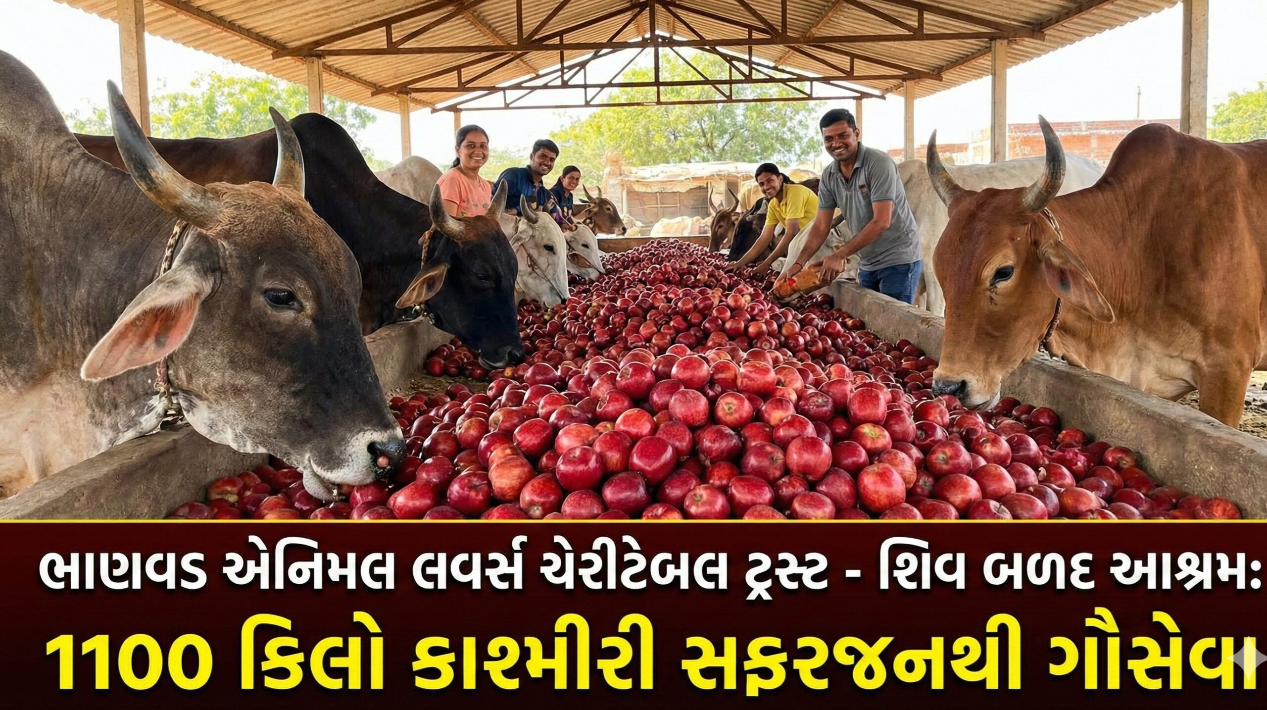 ભાણવડ એનિમલ લવર્સ ચેરીટેબલ ટ્રસ્ટ અને તેના દ્વારા સંચાલિત શિવ બળદ આશ્રમમાં ગૌવંશોની અનોખી અને હર્ષભરી સેવા કરવામાં આવી. આશ્રમમાં રહેલા તમામ બળદને વિશેષ રૂપે 1100 કિલો કાશ્મીરી સફરજન પીરસવામાં આવ્યા, જે ગૌસેવા માટે એક સરાહનીય પહેલ ગણાય છે.