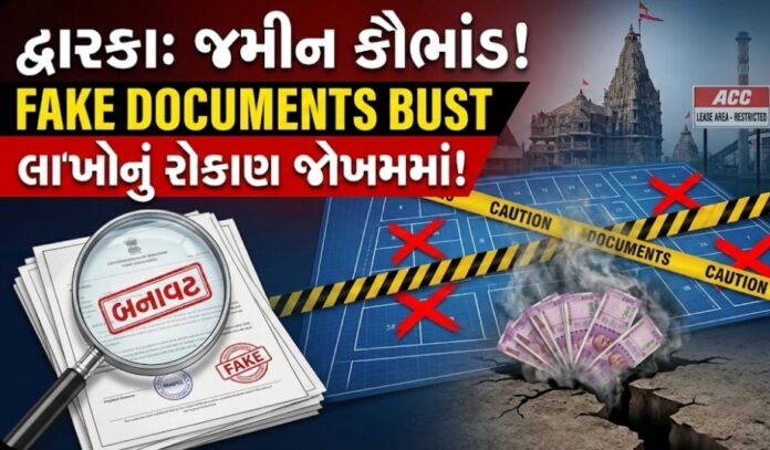 દેવભૂમિ દ્વારકા તાલુકામાં સરકારી અને જૂની લીઝ ધરાવતી જમીન પર ખોટા દસ્તાવેજો બનાવી પ્લોટિંગ કરીને કરોડો રૂપિયાનું ગેરકાયદેસર વેચાણ થયાનું બહાર આવ્યું છે. અનેક લોકોએ અજાણતાં રોકાણ કરી નાખ્યું છે અને હવે તેમની માલિકી તથા પૈસા બંને જોખમમાં છે.
