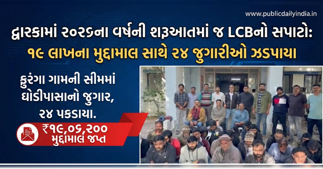 દ્વારકામાં ૨૦૨૬ના વર્ષની શરૂઆતમાં જ LCBનો સપાટો: ૧૯ લાખના મુદ્દામાલ સાથે ૨૪ જુગારીઓ ઝડપાયા