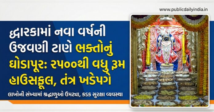 દ્વારકામાં નવા વર્ષની ઉજવણી ટાણે ભક્તોનું ઘોડાપૂર: ૨૫૦૦થી વધુ રૂમ હાઉસફૂલ, તંત્ર ખડેપગે