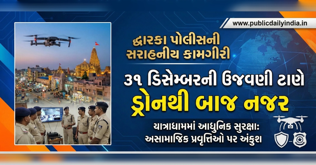 દ્વારકા પોલીસની સરાહનીય કામગીરી: ૩૧ ડિસેમ્બરની ઉજવણી ટાણે ડ્રોનથી બાજ નજર