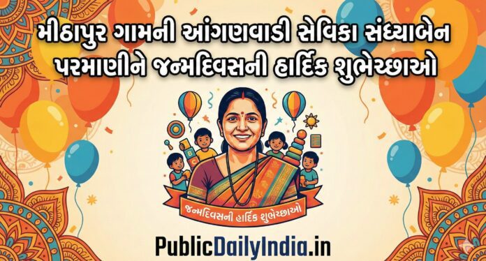 દેવભૂમિ દ્વારકાના મીઠાપુર ગામમાં રહેતા સંધ્યાબેન પરમાણીનો આજે જન્મદિવસ ઉજવાઈ રહ્યો છે. આ પ્રસંગે પરિવારજનો, સ્નેહીજનો તથા ગામના લોકોએ તેમને હૃદયપૂર્વક શુભેચ્છાઓ પાઠવી છે.