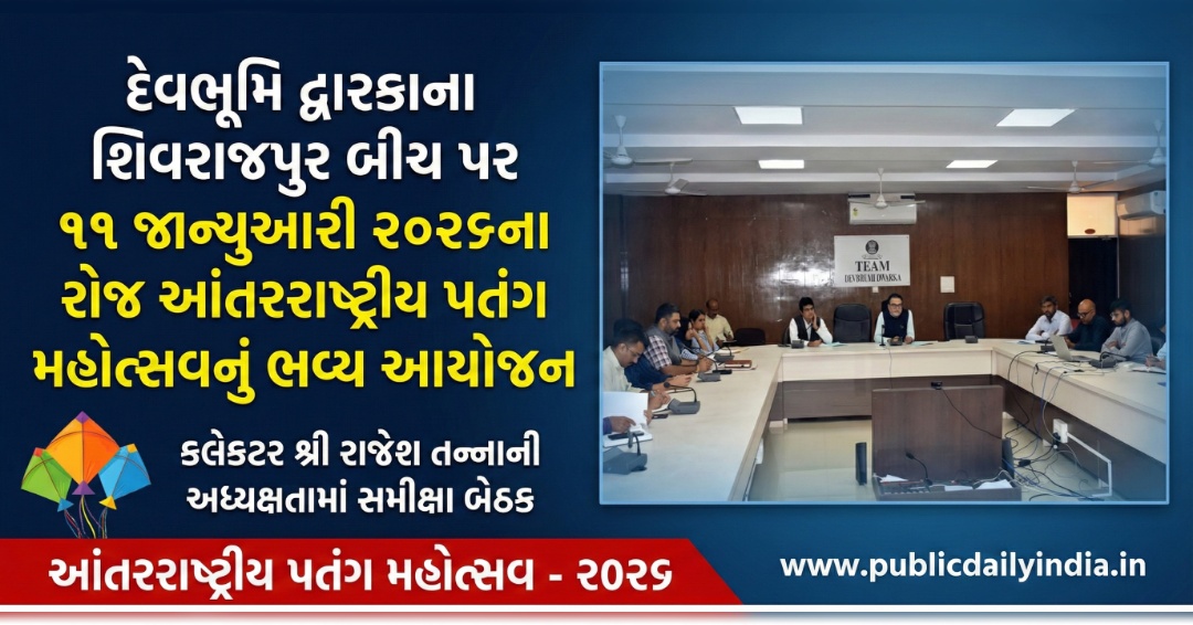 ગુજરાત રાજ્યને પ્રવાસન ક્ષેત્રે વિશ્વભરમાં અગ્રેસર કરવાના હેતુથી રાજ્ય સરકાર દ્વારા દર વર્ષે આંતરરાષ્ટ્રીય પતંગ મહોત્સવનું આયોજન કરવામાં આવે છે. આ પરંપરાને આગળ ધપાવતા, દેવભૂમિ દ્વારકા જિલ્લાના સુપ્રસિદ્ધ બ્લુ ફ્લેગ શિવરાજપુર બીચ ખાતે આગામી તારીખ ૧૧ જાન્યુઆરી, ૨૦૨૬ના રોજ આંતરરાષ્ટ્રીય પતંગ મહોત્સવનું ભવ્ય આયોજન કરવામાં આવશે.