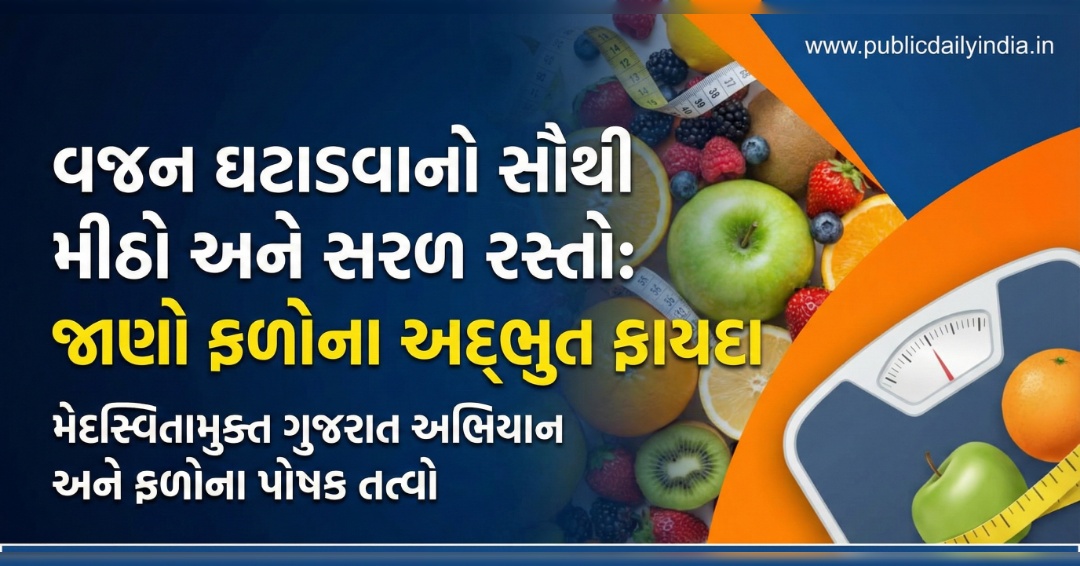 આજની ભાગદોડ ભરેલી જિંદગી અને અનિયમિત આહારશૈલીને કારણે મેદસ્વિતા એક ગંભીર સમસ્યા બની ગઈ છે. ગુજરાત સરકાર દ્વારા ‘સ્વસ્થ ગુજરાત, મેદસ્વિતામુક્ત ગુજરાત’ અભિયાન અંતર્ગત સ્થૂળતા નિવારવા માટે જનજાગૃતિ ફેલાવવામાં આવી રહી છે. વજન નિયંત્રણ માટે માત્ર કસરત જ નહીં, પરંતુ સંતુલિત આહાર પણ અત્યંત આવશ્યક છે, જેમાં ફળો મહત્વની ભૂમિકા ભજવે છે. ફળો માત્ર સ્વાદિષ્ટ જ નથી હોતા, પરંતુ તેમાં રહેલા પોષક તત્વો વજન ઘટાડવામાં ખૂબ જ મદદરૂપ સાબિત થાય છે.